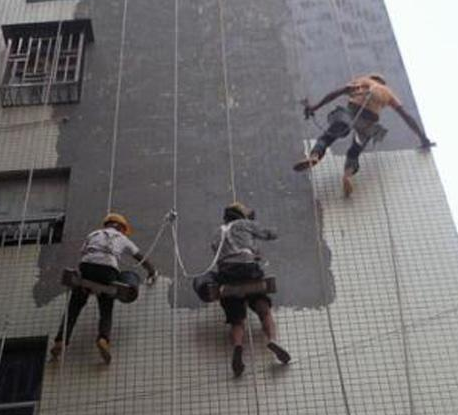 2、墻體孔洞檢查及處理:批灰前應檢查墻體孔洞,封堵如墻身的各種孔洞,不平整處用1:3水泥砂漿找平,如遇太厚處,應分層找平,或掛鋼筋網,粘結布等批灰,另對腳手架、塔吊、施工電梯的拉結桿等在外墻留下的洞口應清潔潤, 用素水泥漿掃漿充分,再用干硬性砼分2次各半封堵,先內后外,充分搗固密實,水落管卡子鉆孔向下傾斜3°-5°,卡釘套膨脹膠管刷環(huán)氧樹脂嵌入,嚴禁使用木楔。混凝土剪力墻上的螺桿孔應四周鑿成喇叭口,用膨脹水泥砂漿塞滿,再用聚合物防水漿封口,封堵嚴密。